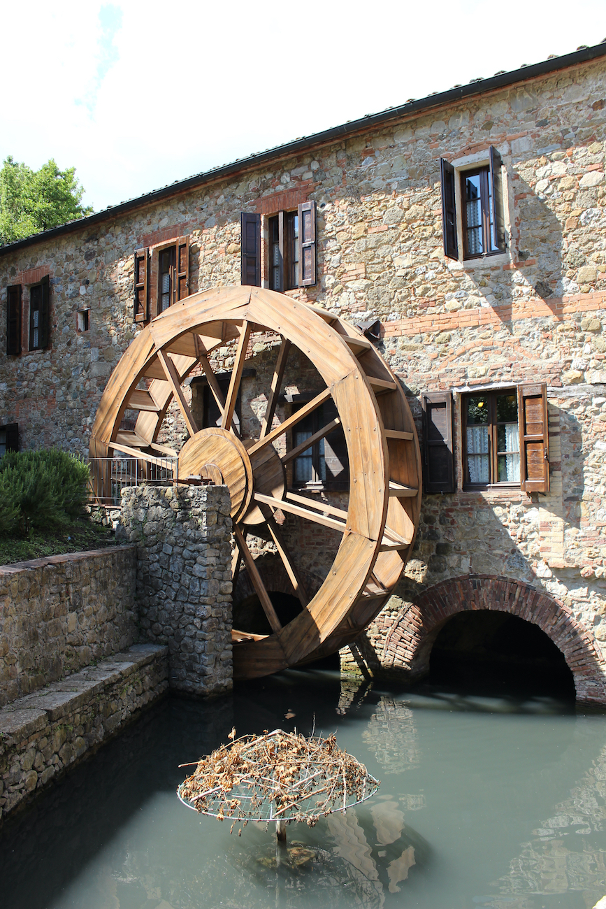 Quel mulino esiste veramente si trova in Toscana a Chiusdino vicino Siena e purtroppo il suo destino è incerto. L’edificio costruito all’inizio del XII secolo dai Monaci dell’Abbazia di Serena, serviva per lavorare il grano e sodare le stoffe per la vendita ai mercati. Prima di divenire il set delle iconiche pubblicità, era abbandonato. Il lustro e la fama che la Mulino Bianco gli portò lo trasformarono in un’ambitissima meta.