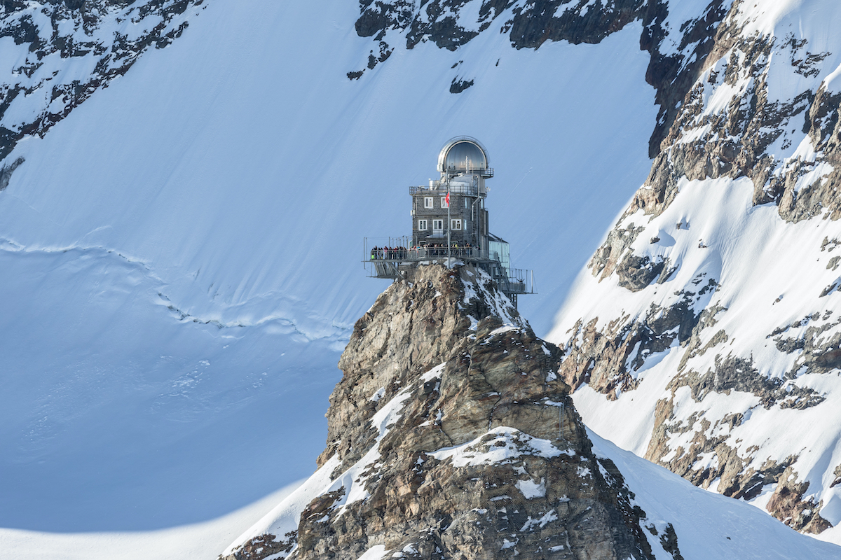 Arrivati alla stazione di Jungfraujoch, un ascensore porta sulla vetta dove si trovano l’Osservatorio e la celebre terrazza belvedere. Da qui si gode una vista grandiosa sulle montagne e sul ghiacciaio dell’Aletsch che vale il costo del biglietto. Inoltre ci sono bar, ristoranti, negozi scolpiti nella montagna oltre al celebre Palazzo di Ghiaccio.