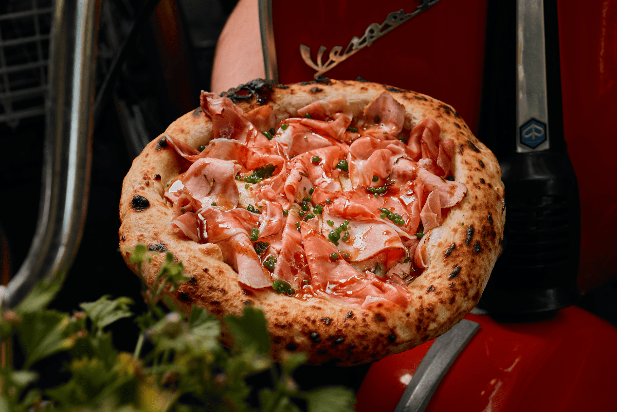 “Proporremo una pizza contemporanea, di ispirazione casertana con il 70% di idratazione. Lavoro con grani umbri che donano una sensazione olfattiva incredibile all’impasto, ne deriva un sapore autentico che viene valorizzato da topping preparati in cucina da Giorgio”.