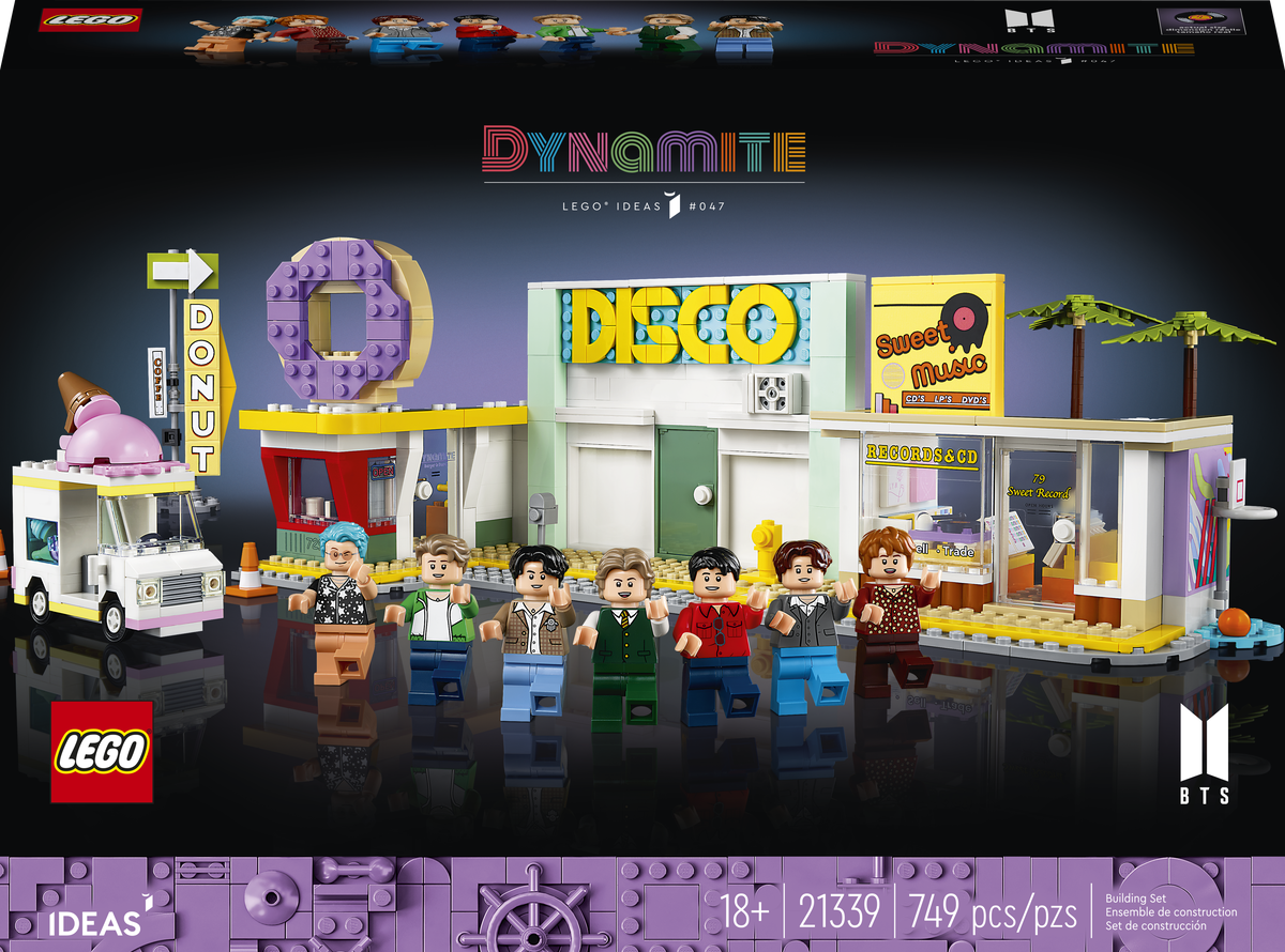 Il set LEGO conta 749 pezzi, ricchi di dettagli che rispecchiano le scene del video musicale tra il negozio di ciambelle, il camioncino dei gelati e il negozio di dischi. Ogni edificio è completamente isolabile dal set e consente esperienze di gioco individuali. Ovviamente, non possono mancare RM, Jin, SUGA, j-hope, Jimin, V e Jung Kook, per la prima volta in formato di minifigure LEGO.