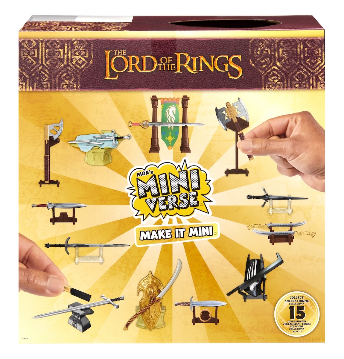 Ma c’è di più! I fan della Terra di Mezzo apprezzeranno anche la misteriosa capsula che comprende mini-pezzi da comporre a tema Il Signore degli Anelli. All’interno si trovano gli ingredienti per creare la propria personale replica in miniatura delle armi più iconiche presenti nel film. Questi mini-pezzi, curati nel dettaglio e del tutto realistici, possono essere anch’essi trattati con gli UV o con la luce del sole per poterli esporre in modo permanente e si presentano in 15 magnifici stili, tutti da collezionare.