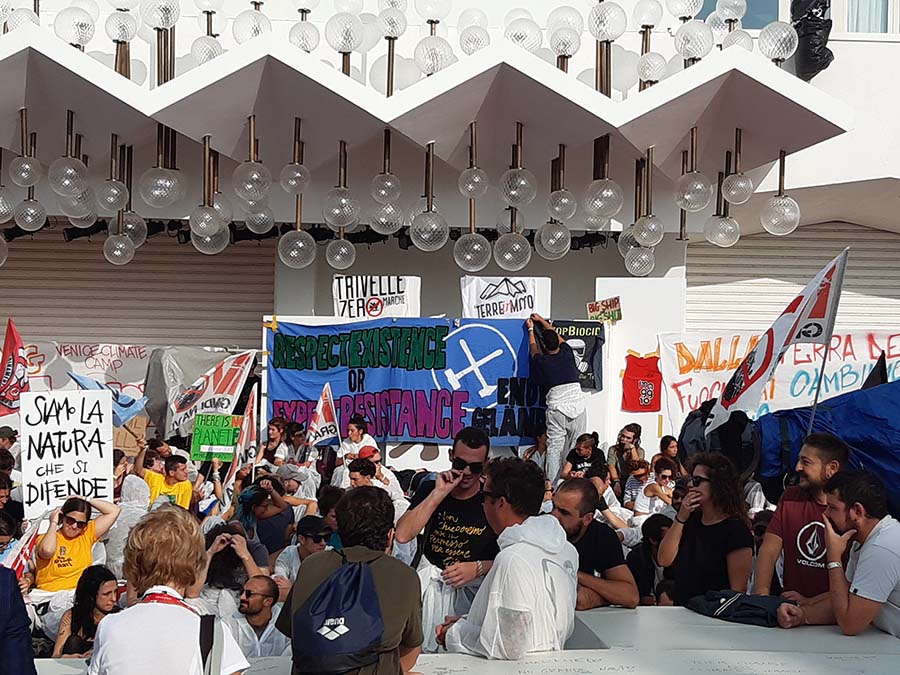 Nel giorno in cui la Mostra del Cinema di Venezia arriva alla sua fase conclusiva con l’assegnazione dei premi, FridaysForFuture occupa il carpet per far sentire forte la sua voce.