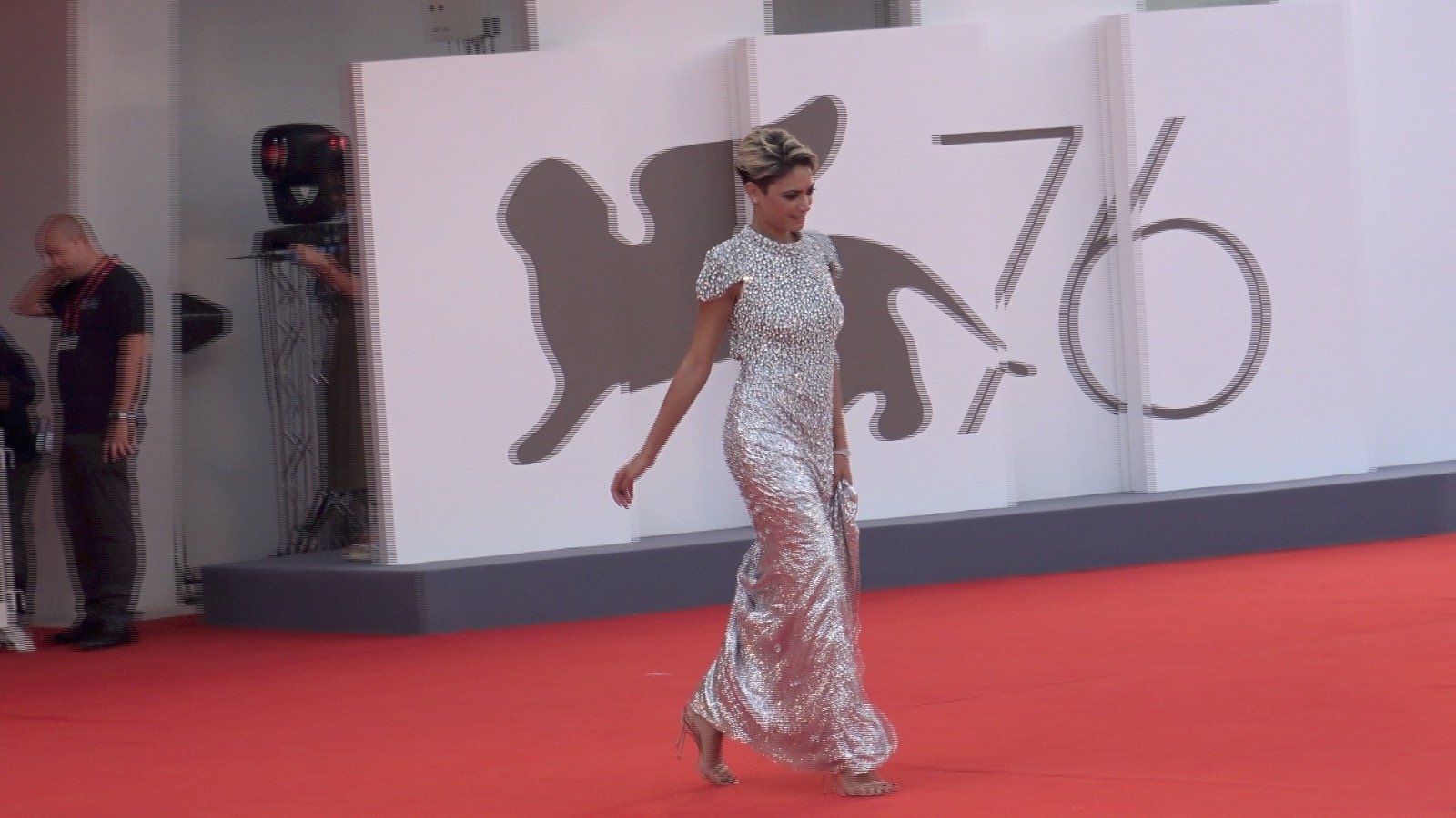 L’artista prima di fare il suo ingresso sul tappeto rosso della Mostra del Cinema di Venezia ha avuto un piccolo imprevisto: l’abito si è infilato sotto il tacco della scarpa impedendole di iniziare la passerella. Elodie, però, non si è demoralizzata e con estrema naturalezza ha risolto il problema e si è lanciata tra i flash dei fotografi.