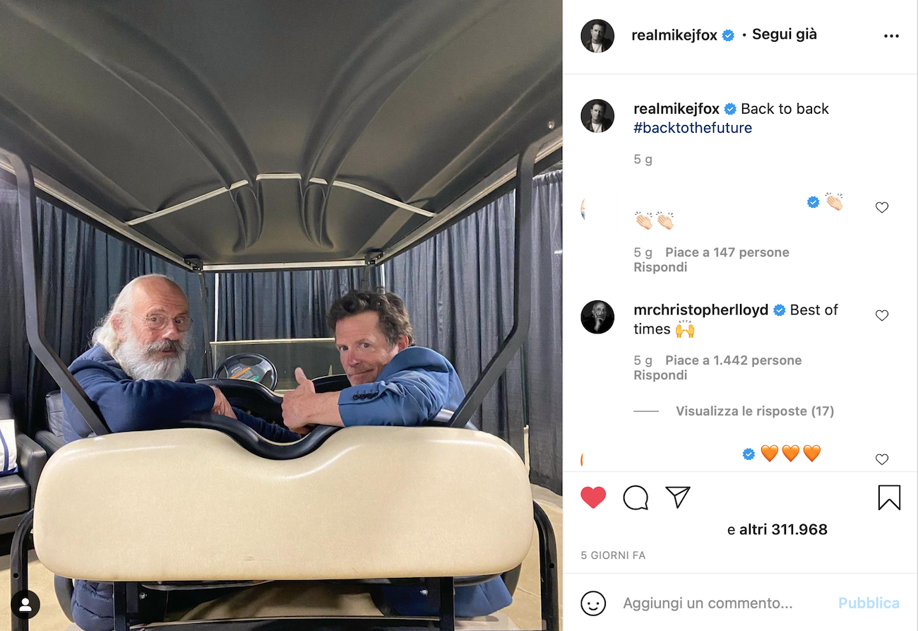 Alzi la mano chi non ha provato una stretta al cuore nel vedere la fotografia postata da Michael J. Fox e Christopher Lloyd (Marty e Doc) su Instagram. I protagonisti del film cult ‘Ritorno al futuro’ si sono messi in posa come quando erano nella DeLorean, suscitando una valanga di like e commenti.