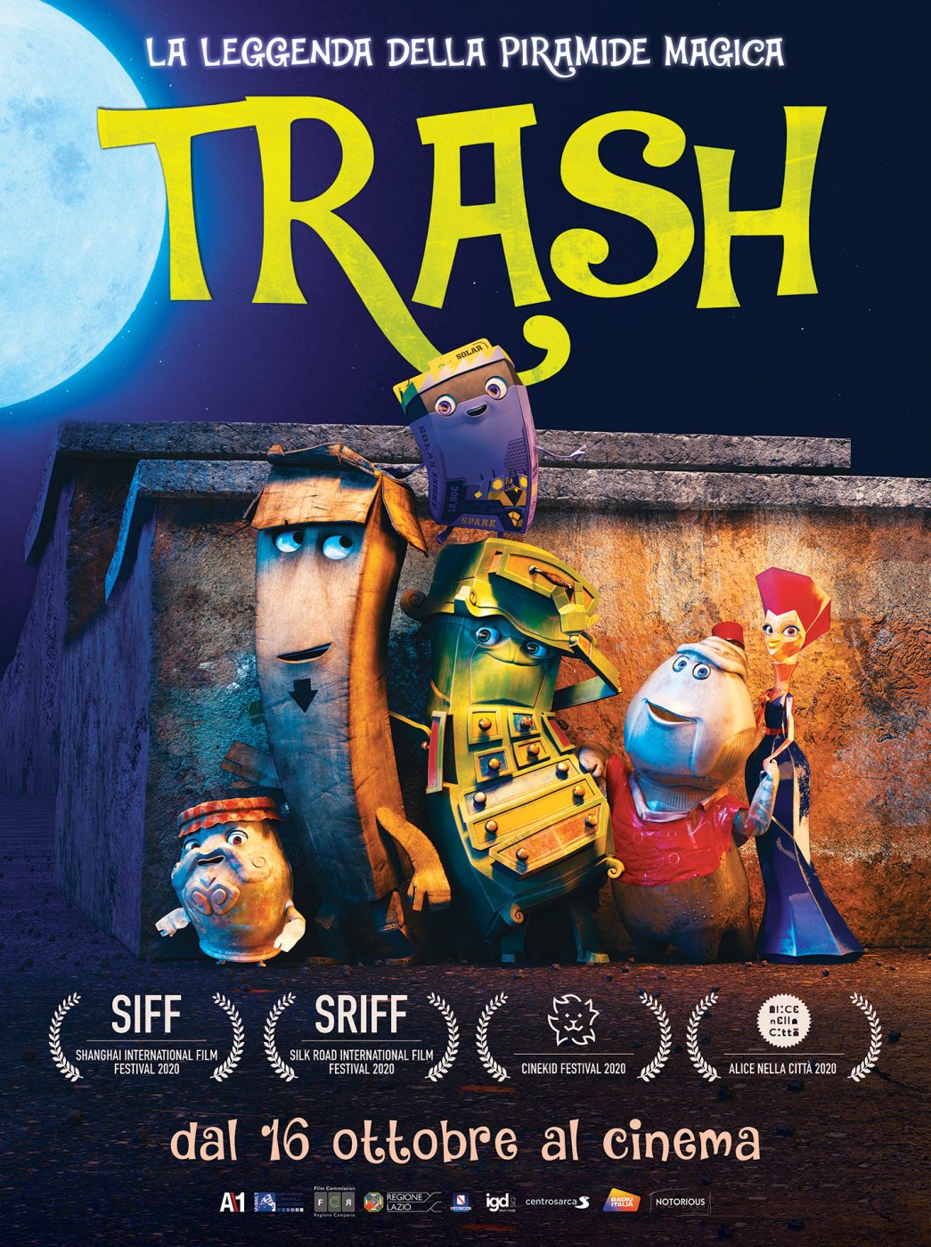 In anteprima esclusiva, vi mostriamo la clip dei titoli di testa di Trash dove il coinvolgente brano ‘Oh Mamma Mamma’ composta da Raphel Gualazzi con Matteo Buzzanca (che firma la colonna sonora del film) accompagna disegni e animazioni splendide e accattivanti. A fare da cornice a questa storia, Roma. Una location iconica per un doppio motivo: da una parte perché il tema della gestione dei rifiuti è tristemente attuale, dall’altra perché è una città magica. E la magia è un altro punto fondamentale di questo film di animazione.