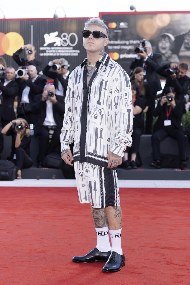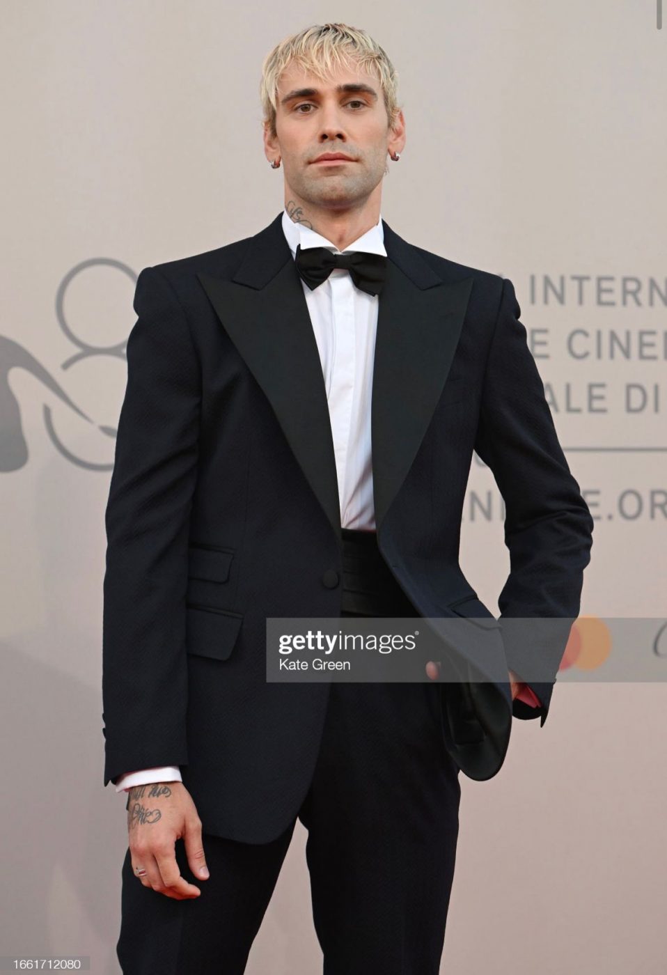 Da apprezzare lo sforzo di essere elegante sul red carpet di Venezia. Infatti ha impacchettato la sua anima e look rap in uno smoking molto bello.