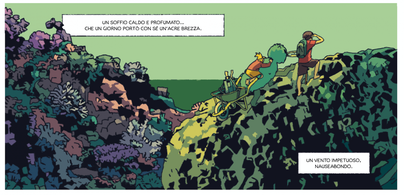 Con uno stile originale, una storia avventurosa come un videogioco di Hideo Kojima che fa riflettere sui temi dell’inquinamento e della crisi climatica, e del ruolo dell’umanità in tutto questo. Essere Montagna di Jacopo Starace, del resto, è già nominato nella Sélection Eco-Fauve per i libri a tema ambientale del festival di Angoulême 2023.