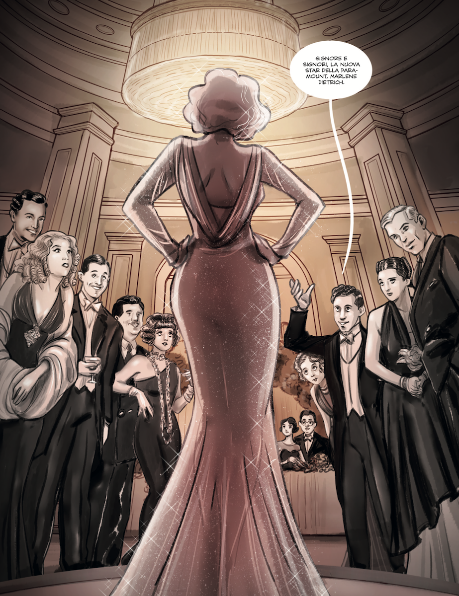 «Avevamo poche pagine – continua Alessandro – e non è stato facile, ma forse siamo noi autori a volere sempre più di quanto gli editori ci concedono. Forse a guidarci, più di tutto, è stata la donna, intesa come essere umano ma anche come femmina. Ovunque andasse, gli uomini prestavano attenzioni alla Dietrich e questo avveniva in un mondo maschilista. Ciò l’ha spinta ad agire e ad ottenere una serie di cose che si sono riflesse su famiglia, amanti e lavoro. È la radice e la linea che ha guidato tutto: cos’era una donna nel 1900? Partendo da qui, il resto è venuto da sé».