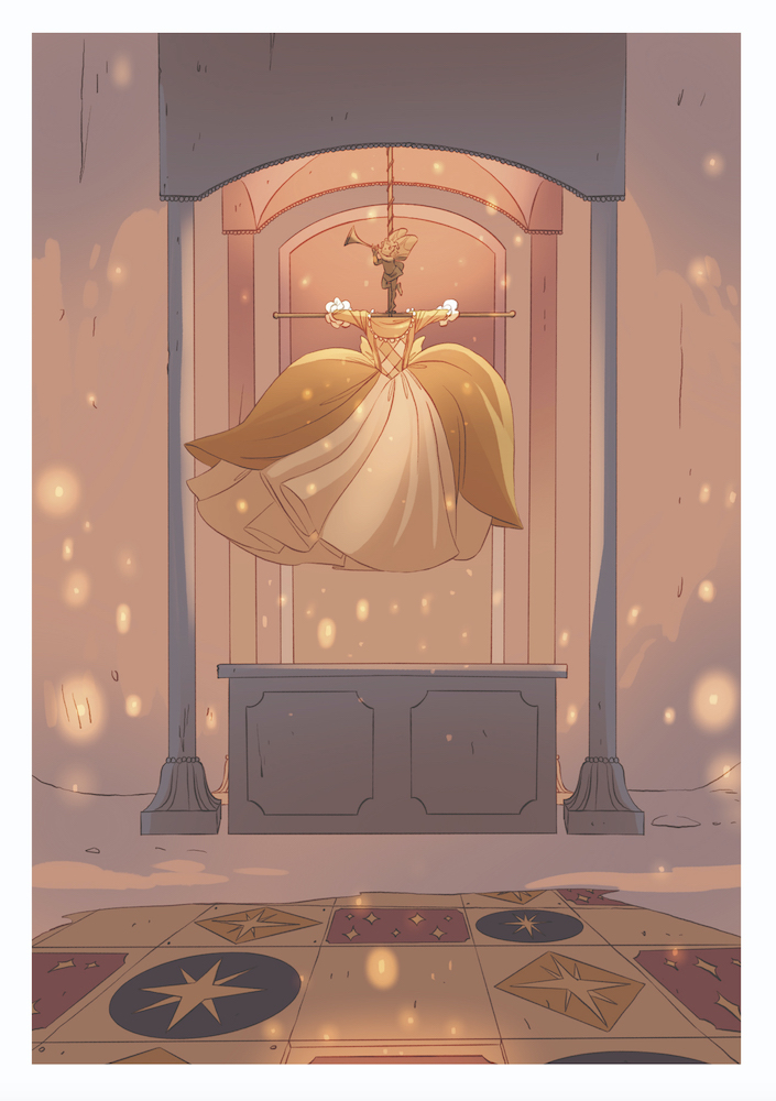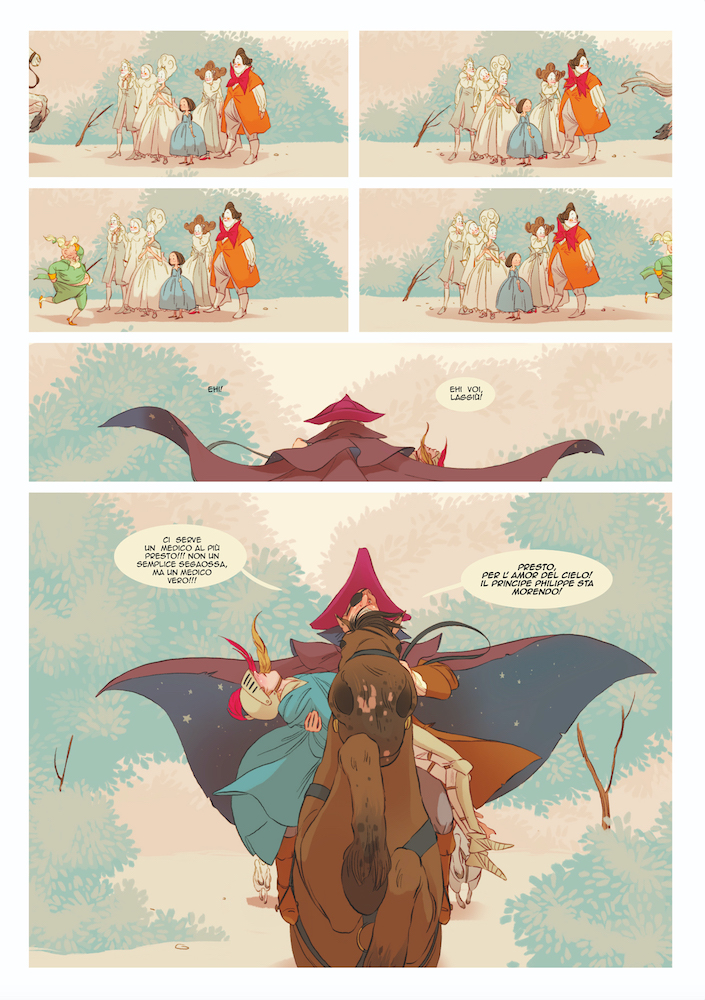 Da qui anche i colori tipici del vaudeville, che erano «belli, ma molto leggeri». «Anche guardando Il Flauto Magico di Ingmar Bergman si vedono questi sfondi dipinti in maniera leggera. – dice Rosalia – La Regina dei Buffoni inizia come un’opera teatrale e volevo dare la sensazione che ci fosse un mondo fatto di cartone. I colori poi cambiano quando si arriva nella città perché lì inizia a subentrare la realtà. Il rosso è già un assaggio della violenza che Jacqueline percepisce nella vita reale: inizia a provare questo malanimo e questa sensazione di paura e aggressione».