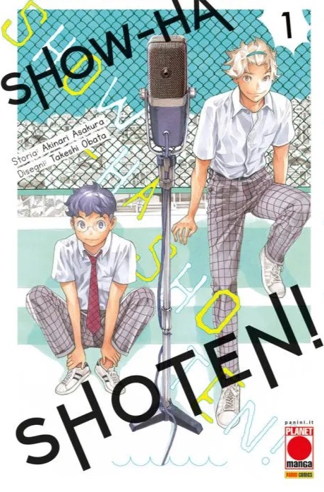 Infine, la nuova e imperdibile opera di Takeshi Obata, con la sceneggiatura di Akinari Asakura: l’esilarante shonen manga Show-Ha Shoten!. I protagonisti sono Azemichi Shijima e Taiyo Higashikata: il primo è un geniale umorista con il terrore del pubblico, il secondo è un animale da palcoscenico del tutto incapace di ideare gag. Riusciranno insieme a sfondare come duo comico?