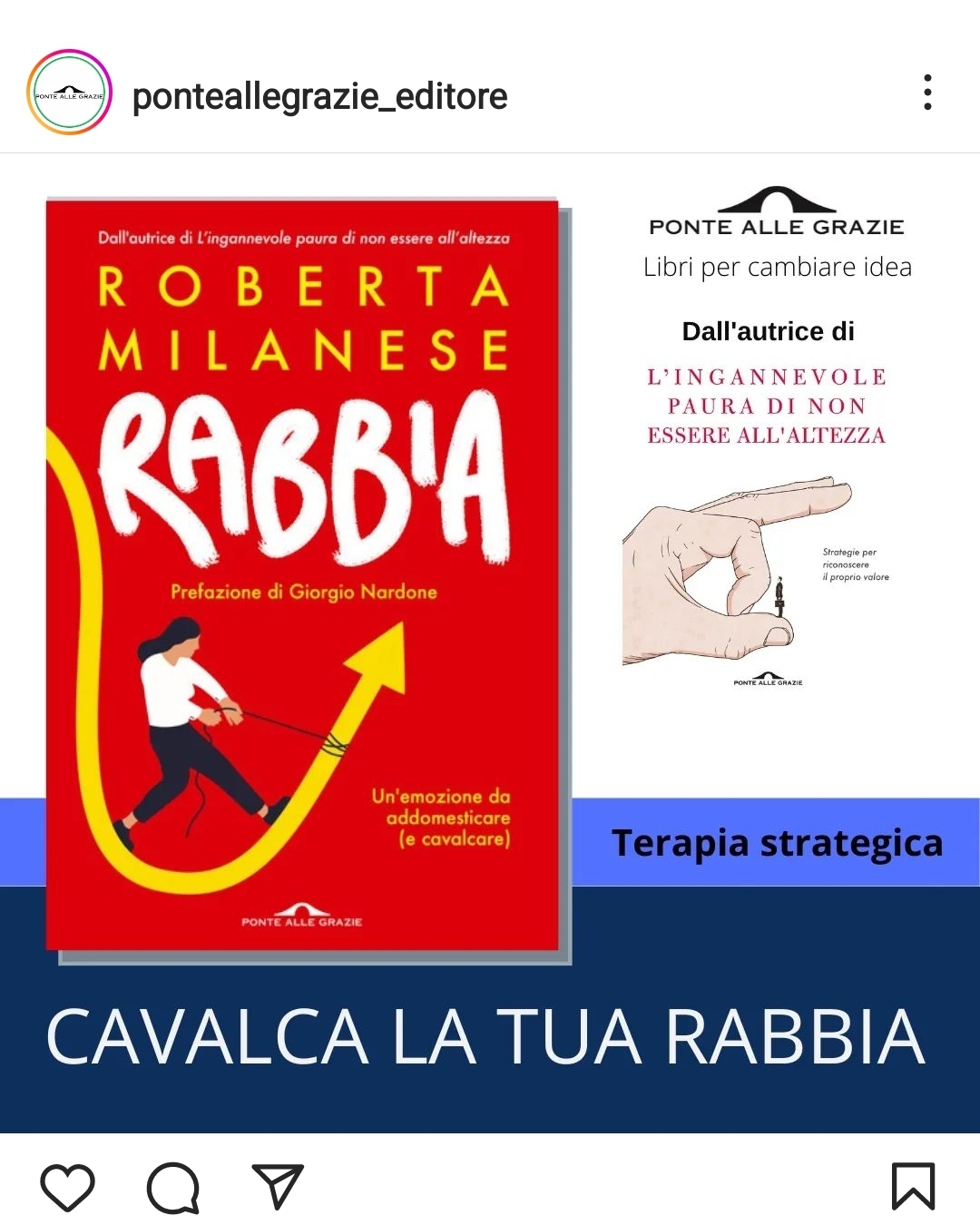 Se nell’universo emotivo dell’essere umano esiste un’emozione che il pensiero comune etichetta con una connotazione sempre e solo negativa, quella è la rabbia. Ed è proprio a questa che la psicologa psicoterapeuta Roberta Milanese ha dedicato il suo ultimo saggio per Ponte alle Grazie. Disponibile nei formati cartaceo e digitale, Rabbia vuole portare per mano il lettore attraverso uno spazio che spesso fa paura o ci si rifiuta di attraversare. Perché la tanto bistrattata ira funesta – di cui la cronaca ci riporta sempre più spesso esiti drammatici – è un’emozione che può diventare risorsa.
