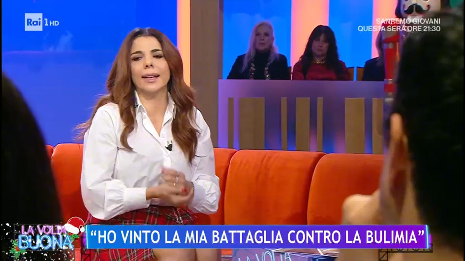 Proseguono i consueti appuntamenti pomeridiani con La Volta Buona, il programma condotto da Caterina Balivo, in onda su Rai 1 dalle ore 14.00 alle 16.00. Tra gli ospiti della puntata di martedì 19 dicembre, a sedere sul divano rosso insieme alla conduttrice anche Mietta che ha raccontato la sua battaglia vinta contro la bulimia.
