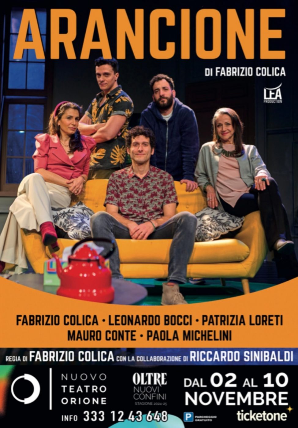 Sarà in scena dal 2 al 10 novembre al Nuovo Teatro Orione di Roma lo spettacolo teatrale Arancione di Fabrizio Colica. Una commedia in cui l’arancione è tutto tranne un colore: è il mix tra il giallo di chi siamo e il rosso di chi gli altri vorrebbero che fossimo, un miscuglio di toni di cui non possiamo fare a meno. È una commedia ambientata a ora di cena, ma senza una cena vera e propria.