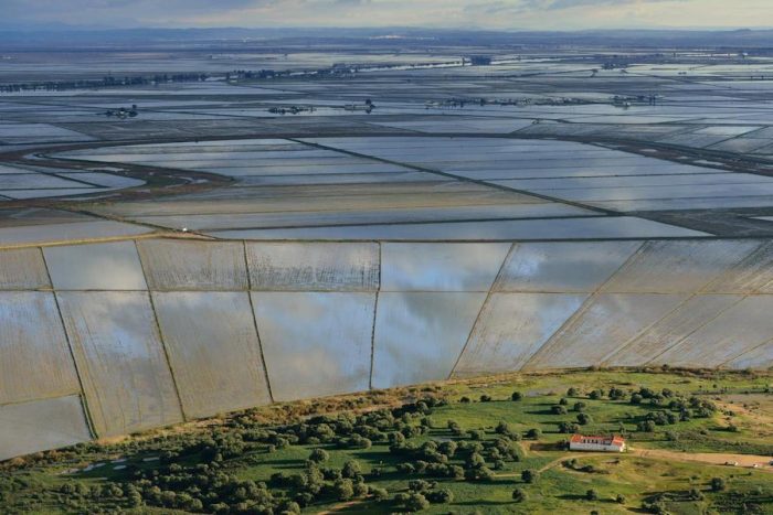 «Ero sul piccolo aereo Cessna di un amico per fotografare le paludi del fiume Guadalquivir. – spiega la fotografa – Cercavo dei bei riflessi sulle risaie, ma non mi sarei mai aspettata questa illusione ottica: la risaia sembrava un muro d’acqua che si solleva dal terreno, ed è stato sorprendente riuscire a immortalarne l’effetto. La coltivazione ecologica del riso in Andalusia è la perfetta simbiosi tra agricoltura e sviluppo sostenibile. Un vero e proprio paradiso per l’avifauna, con circa 6 milioni di uccelli che visitano questa zona ogni anno. Tuttavia, oggi l’intero bacino di Doñana è minacciato, dall’estrazione, anche illegale, di acqua dalla falda acquifera sottostante. Ciò si aggrava per l’aumento della salinità del fiume Guadalquivir, che irriga le risaie, per via dei dragaggi e delle diminuzioni delle precipitazioni».