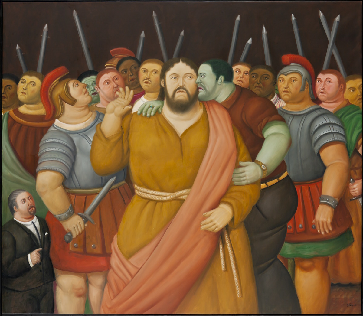 Le stesse che si stagliano con rotondeggiante vigore nelle tele della serie Via Crucis. La passione di Cristo, ciclo di opere, realizzato tra il 2010 e il 2011 che rivela un aspetto intimo e personale dell’artista. Ovvero il suo rapporto con l’eterno e la religione, affrontato in 27 dipinti e 33 opere su carta a tema religioso, un argomento particolarmente significativo per l’artista, influenzato dalla cultura colombiana ricca di immagini devozionali e pratiche religiose.