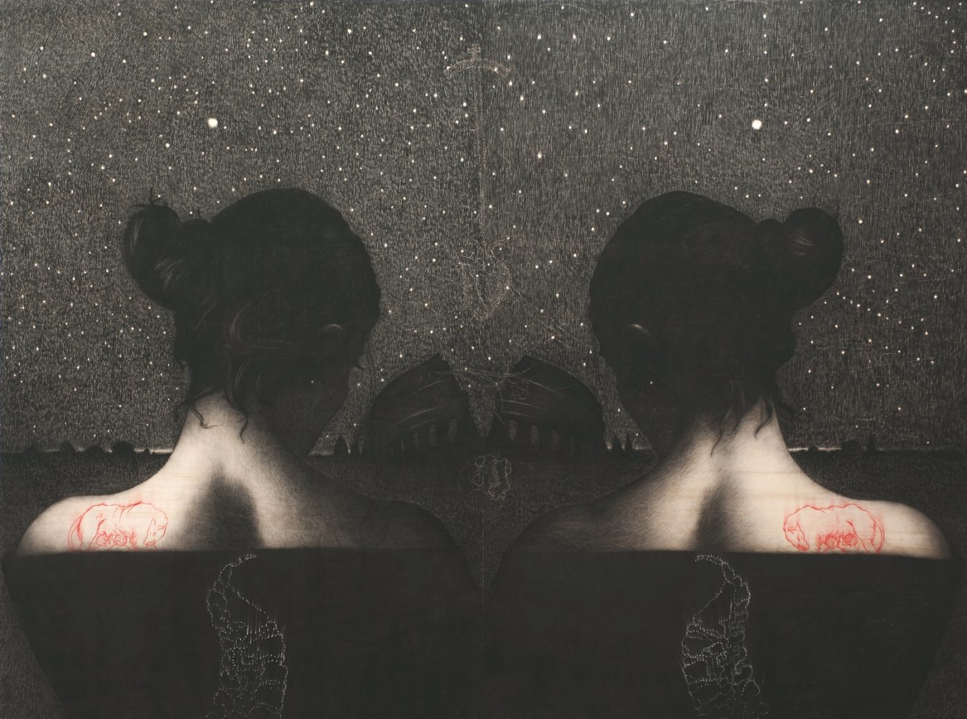 Omar Galliani crede nell’eternità del disegno, che sopravvive al suo creatore e resiste nel tempo: un disegno che definisce tipicamente “infinitissimo” perchè diventa un’opera unica, assoluta, immensa, e che dispone di un proprio tempo, dilatato come le sue dimensioni.