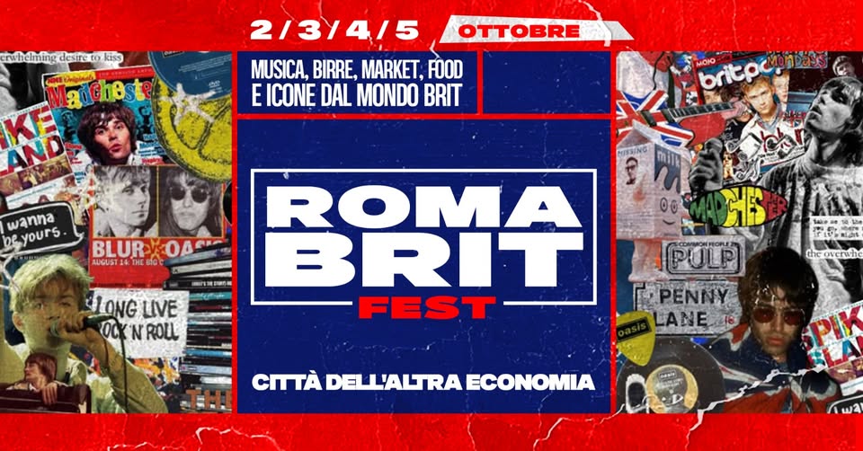 ROMA BRIT FEST 2025 IL PRIMO FESTIVAL DEDICATO ALLA CULTURA BRIT ARRIVA A ROMA 2 — 5 OTTOBRE 2025 Città dell’Altra Economia – Testaccio INGRESSO GRATUITO Un grande evento dedicato all’anima britannica, tra musica, food & drink e divertimento senza sosta! Quattro giorni dedicati alla cultura britannica: musica live, dj set, street food tipico, birre, mercatini e performance […]