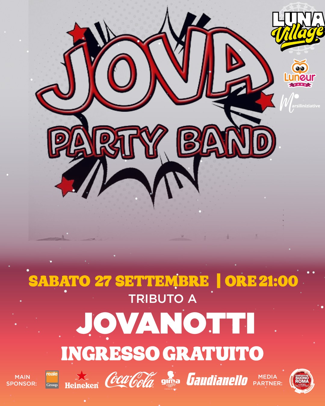 SABATO 27 SETTEMBRE Tributo a Jovanotti con la Jova Party Band! Una serata a tutto volume e divertimento, un pieno di energia positiva! Ingresso gratuito dalle 19:00 Giostre fino alle 02:00 Ti aspettiamo!