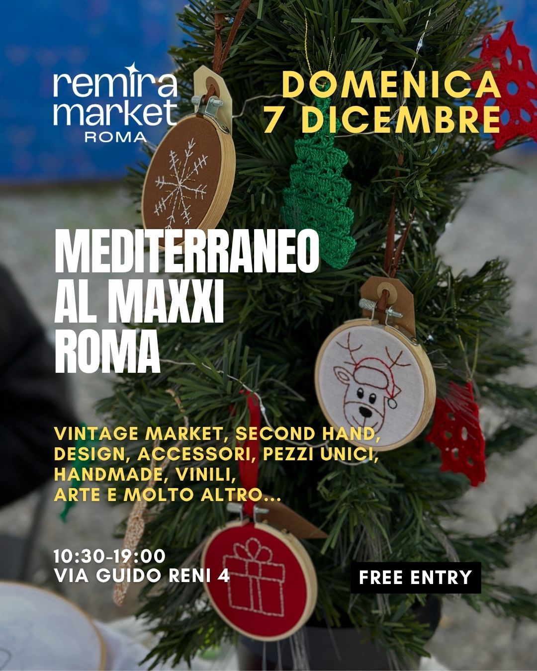 Remira Market Roma – Edizione di Natale al Mediterraneo al MAXXI Mediterraneo al MAXXI – Ristorante e Giardino | Via Guido Reni, 4 Domenica 7 Dicembre 2025 10:30 – 19:00 Ingresso gratuito Torna a Roma una delle realtà più amate nel panorama del vintage e del design indipendente: il Remira Market, che per l’edizione speciale […]