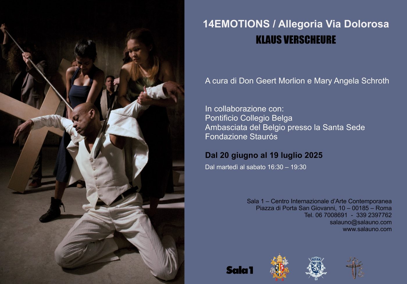 Sala 1 è lieta di presentare 14 EMOTIONS/Allegoria Via Dolorosa, dell’artista belga Klaus Verscheure, un progetto ideato da Don Geert Morlion e in collaborazione con: Pontificio Collegio Belga, Ambasciata del Belgio presso la Santa Sede e Fondazione Staurós.