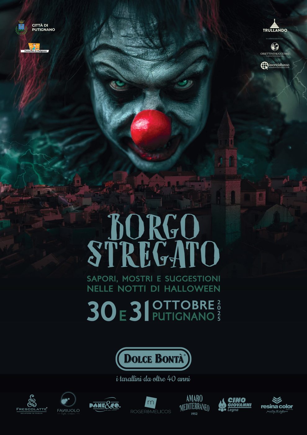 L’evento quest’anno assume uno scenario diverso dal solito: a Putignano vi aspetta un evento “spaccato” in 2, infestato da zombie indemoniati nei vicoli del centro storico, avvolti da una un’atmosfera stregata, mentre fuori le porte del borgo, pullulerà la risposta di chi ha lasciato il centro storico per organizzarsi in isole del gusto con cibi buoni da ‘morire’ che potranno essere assaporati lungo un itinerario condito da manufatti in cartapesta e addobbi realizzati con materiali di recupero. Il tutto accompagnato da artisti, dj e musicisti da strapazzo.