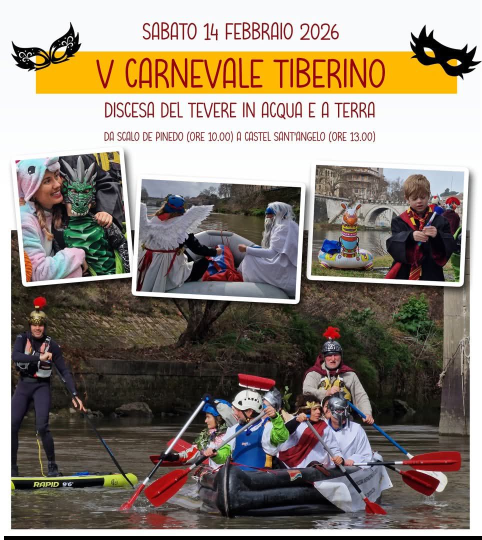 Roma 14 febbraio 2026, carnevale lungo il fiume, evento gratuito.