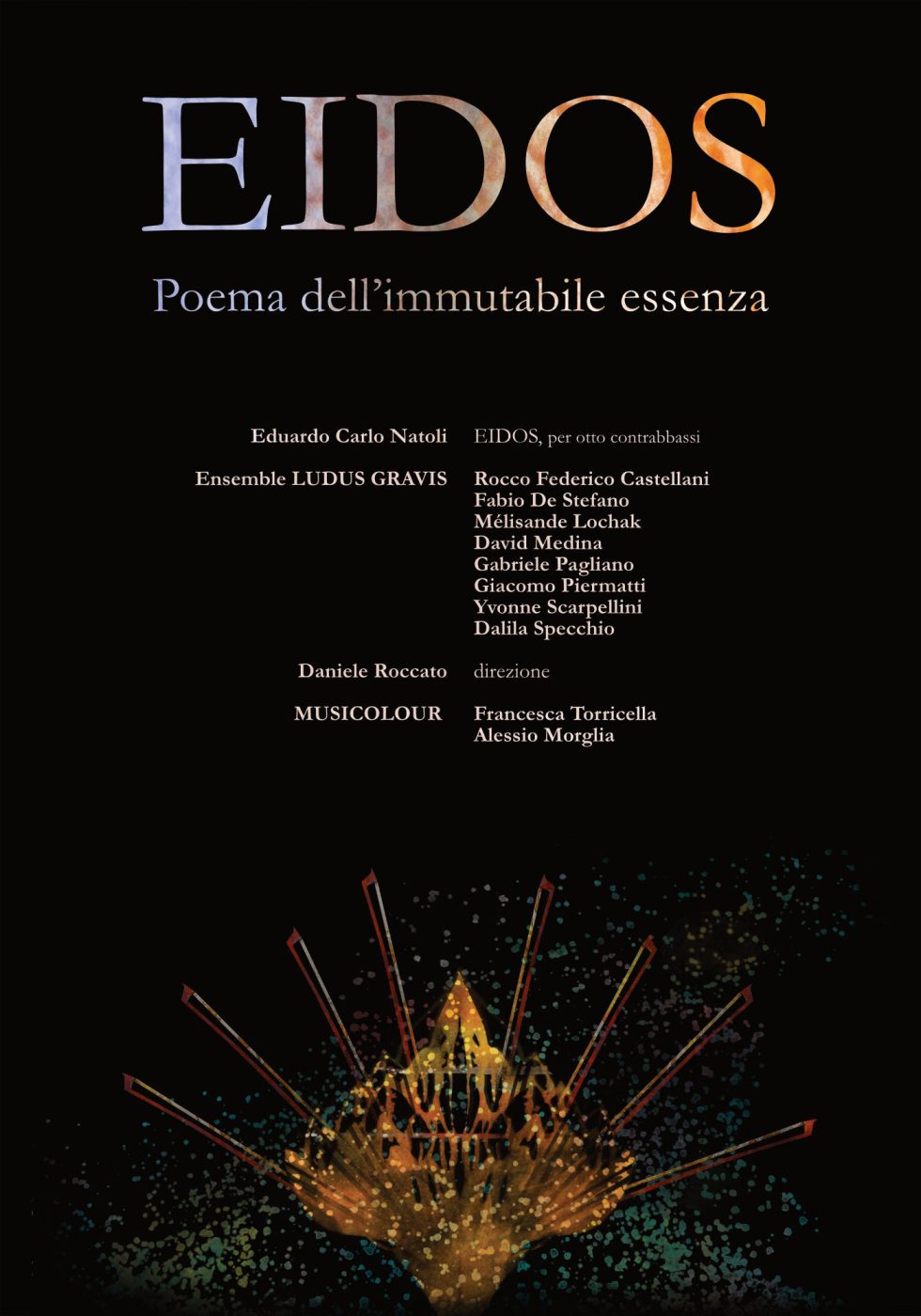 Eidos esplora la condizione dell’immutabile essenza, indagando – attraverso il timbro profondo e materico del contrabbasso – territori sonori in cui la percezione del tempo si dilata, si trasforma, si sospende. La scrittura di Natoli, immersa in un equilibrio tra gesto musicale, densità armonica e tensione drammaturgica, trova in Ludus Gravis un interprete ideale, capace di far emergere la complessità e la potenza espressiva del progetto.