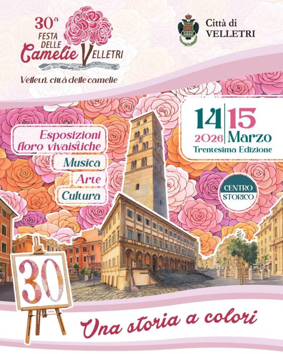 Velletri torna a festeggiare la Festa delle Camelie, che quest’anno giunge alla sua 30ª edizione, in programma sabato 14 e domenica 15 marzo, nel centro cittadino e presso i Camelieti veliterni.
