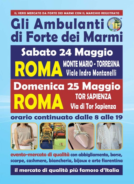 Gli Ambulanti di Forte dei Marmi®, le bancarelle del mercato di qualità più famoso d’Italia, proseguono il loro tour nei municipi della Capitale, come sempre a grande richiesta, con tutto il meglio del Made in Italy artigianale e le ultime tendenze della moda.
