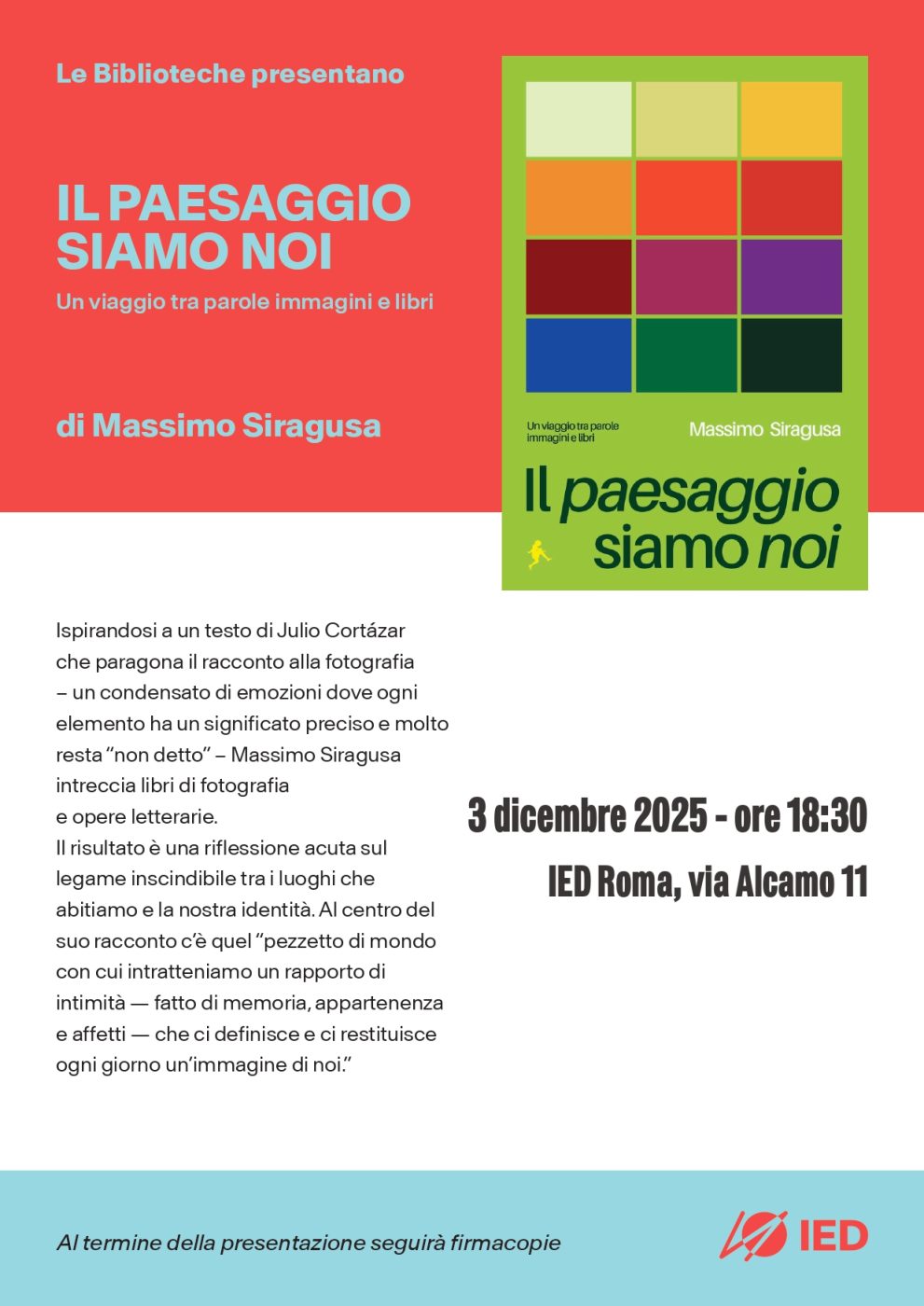 Appuntamento il 3 dicembre 2025 – ore 18:30 presso IED Roma, via Alcamo 11.