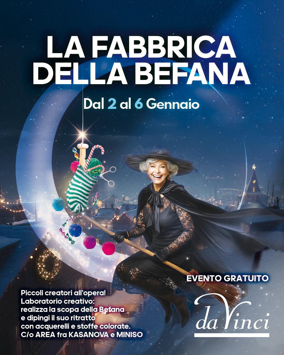 Realizzeremo la scopa della Befana e dipingeremo il suo ritratto con acquerelli e stoffe colorate Evento gratuito, aperto a tutti i bambini.