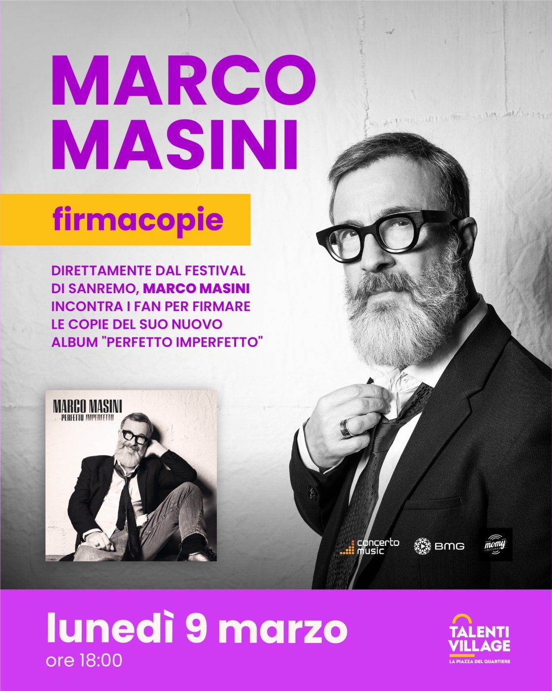 Un appuntamento imperdibile per i fan della grande musica italiana: Marco Masini arriva a Roma per incontrare il pubblico e firmare le copie del suo nuovo album Perfetto Imperfetto.
