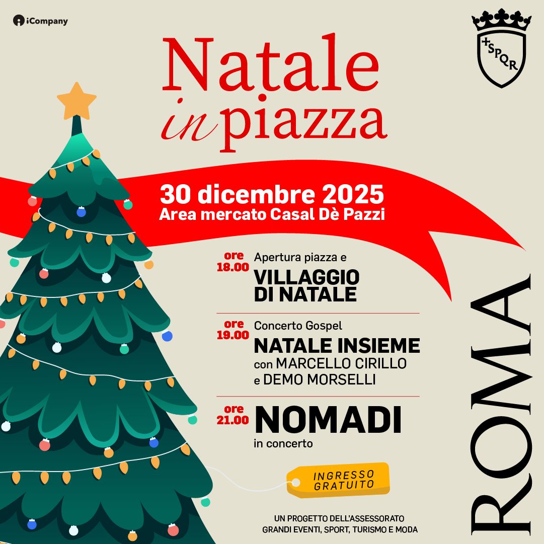 Si terrà martedì 30 dicembre 2025 l’evento “Natale in piazza“, una grande manifestazione a ingresso gratuito che trasformerà l’area del Mercato Rionale di Casal de’ Pazzi (tra Viale Locke e Via Augusto Comte, Municipio IV) in un luogo di incontro, festa e comunità.