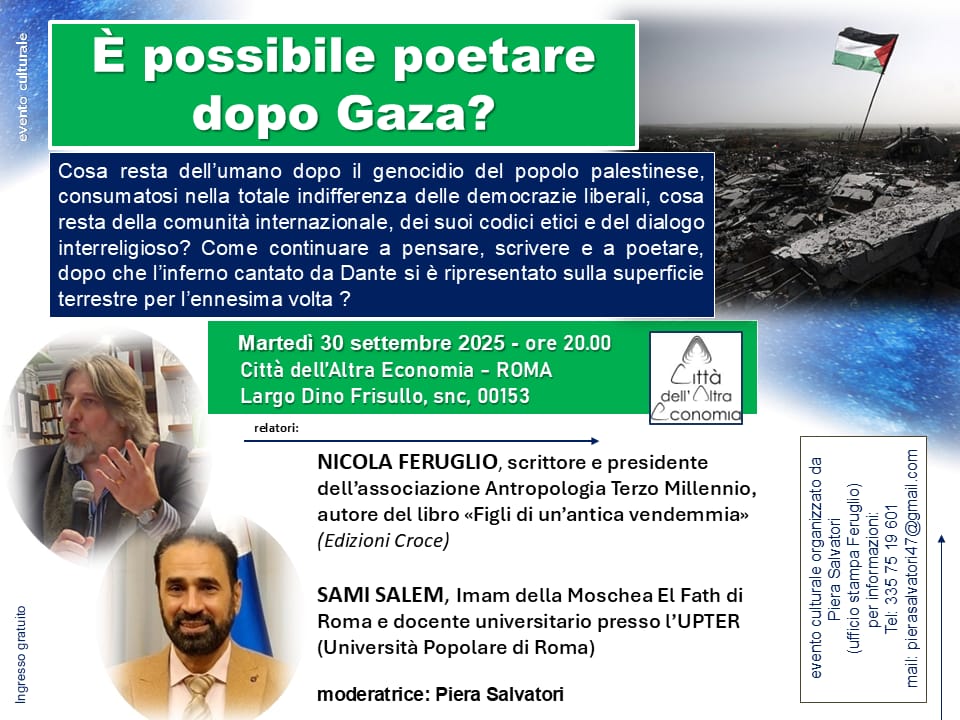 Cosa resta dell’umano dopo il genocidio del popolo palestinese, consumatosi nella totale indifferenza delle democrazie liberali, cosa resta della comunità internazionale, dei suoi codici etici e del dialogo interreligioso? Come continuare a pensare, scrivere e a poetare, dopo che l’inferno cantato da Dante si è ripresentato sulla superfice terrestre per l’ennesima volta ?