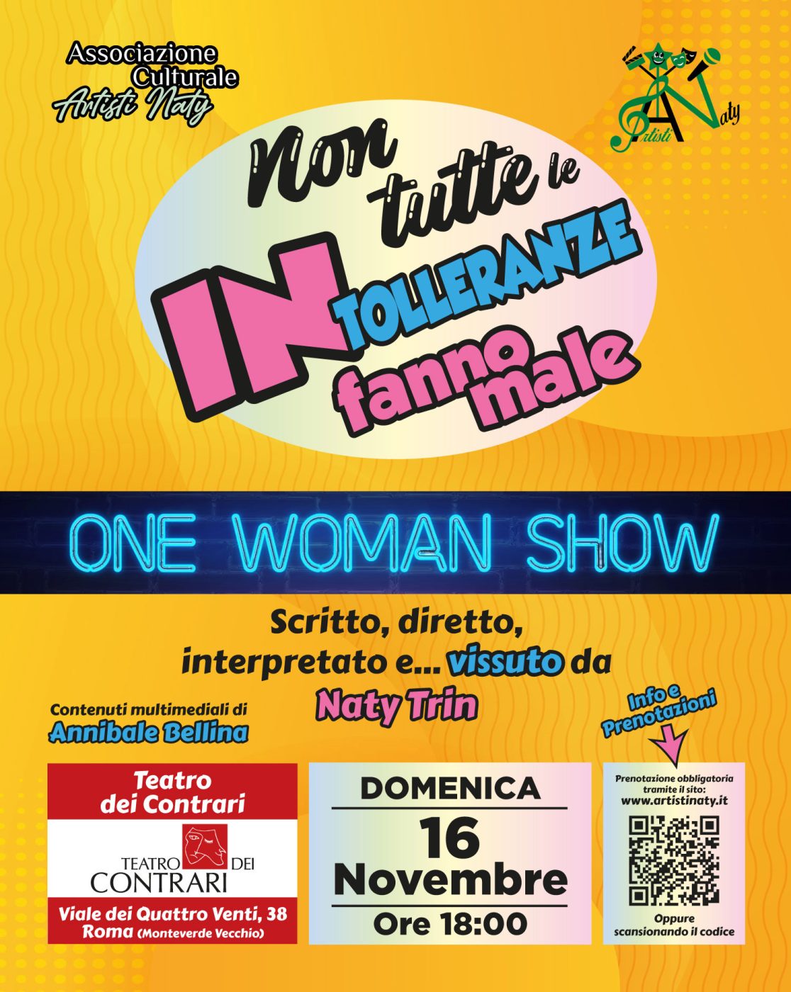 Lo spettacolo “Non tutte le intolleranze fanno male” affronta in modo comico, ironico ma anche riflessivo il tema delle intolleranze. Infatti, viviamo in un mondo dove diventiamo sempre più intolleranti, non soltanto al cibo (e a tutto ciò che tocchiamo e respiriamo), ma anche a qualsiasi situazione, tipo di persona e persino alla vita stessa.
