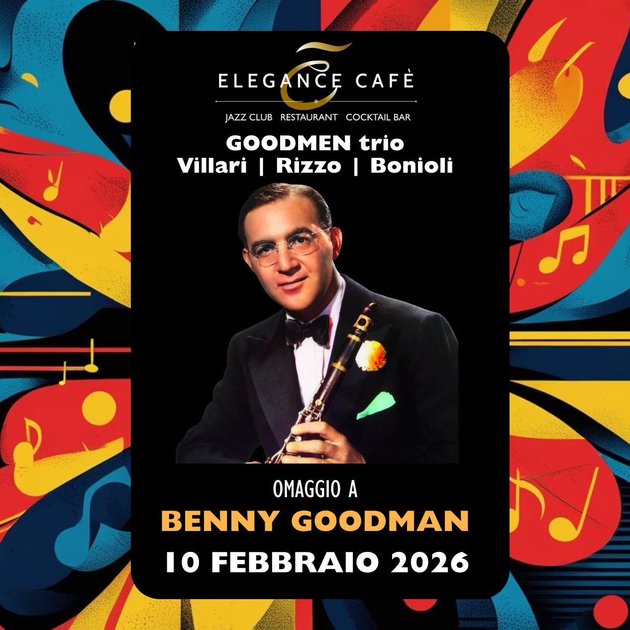 🎺 Martedì 10 Febbraio 2026 – Goodmen Trio: Swing Night @ Elegance Cafè