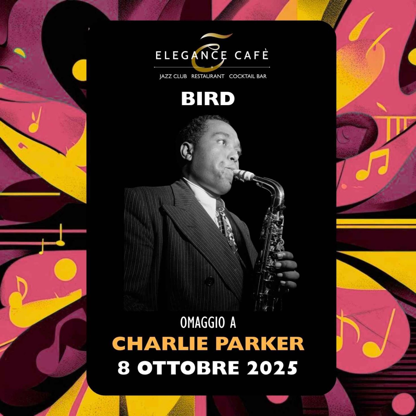 All’Elegance Cafè Jazz Club Roma arriva una serata imperdibile: un concerto omaggio a Charlie Parker, con tre protagonisti della scena jazz italiana: