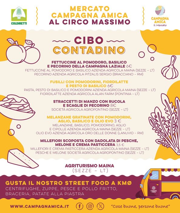 Il Mercato di Campagna Amica al Circo Massimo non è solo un luogo per fare la spesa, ma anche per gustare deliziosi piatti preparati con prodotti delle aziende agricole presenti al mercato. Potete fare una pausa pranzo diversa dal solito e assaporate i sapori autentici della nostra terra! Preparato con amore e passione, ogni piatto racconta la storia della tradizione culinaria.