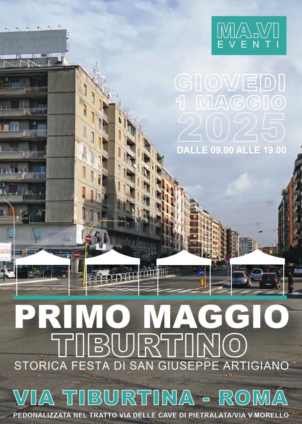 Giovedì 1 Maggio è in programma la manifestazione “Primo maggio Tiburtino” la storica Festa di San Giuseppe Artigiano sulla via Tiburtina con chiusura della sede stradale nel tratto compreso tra via delle Cave di Pietralata e via Vincenzo Morello.