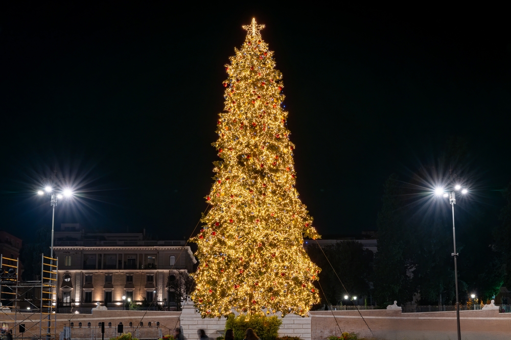 Il tradizionale albero natalizio di Roma illumina una delle piazze più eleganti della città. Un maestoso abete naturale di oltre 20 metri della specie Abies nordmanniana, decorato con sfere oro, argento e rosse, è impreziosito da 100.000 luci LED a basso consumo ed è coronato da una stella dorata. Un simbolo che accoglie romani e turisti all’ingresso del Tridente dello shopping capitolino.
