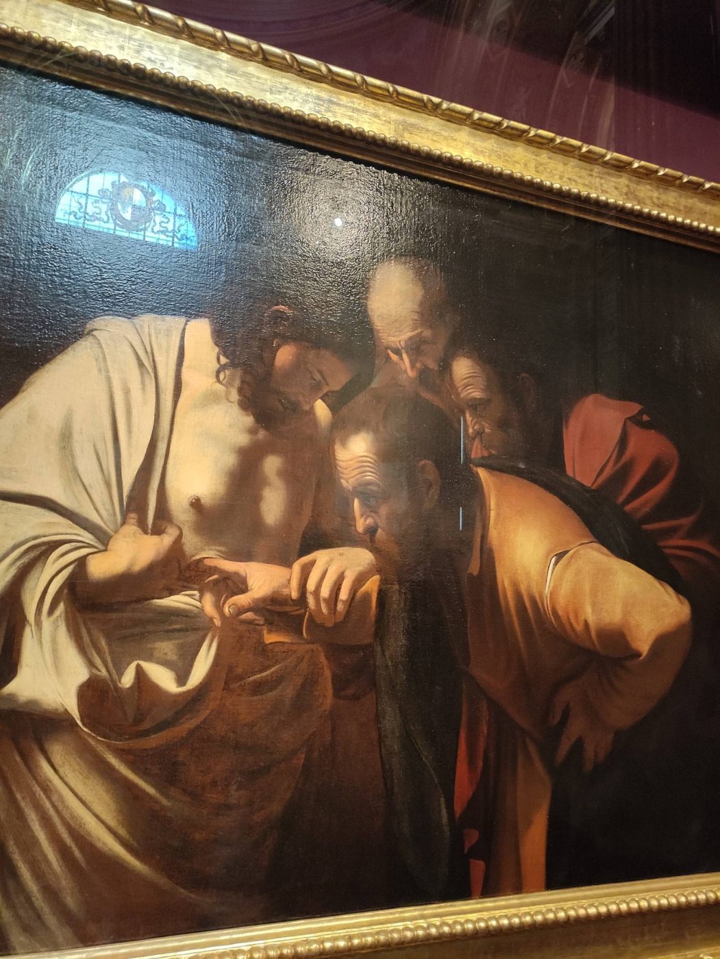 Il confronto tra i due maestri si gioca non solo sul piano artistico, ma anche su quello spirituale. Da un lato Rubens, con la sua pittura luminosa e carnale, celebra il mistero dell’Incarnazione; dall’altro Caravaggio, con il suo realismo drammatico e senza mediazioni, invita il fedele a confrontarsi con il dubbio e la fede, incarnati nel gesto di Tommaso che tocca le ferite del Risorto.