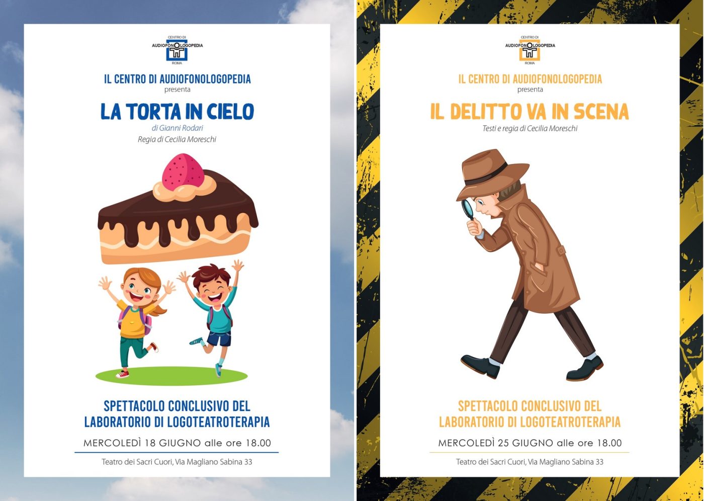 Il Centro di Audiofonologopedia di Roma è lieto di presentare gli spettacoli La torta in cielo e Il delitto va in scena che saranno rappresentati rispettivamente il 18 e il 25 giugno presso il Teatro dei Sacri Cuori, via Magliano Sabina 33.
