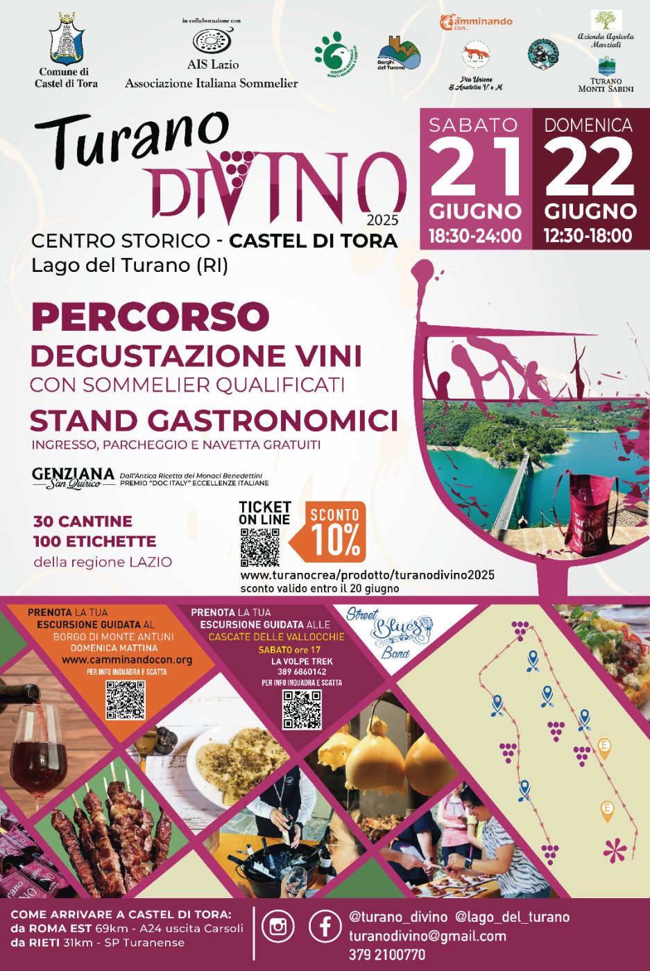 Il 21 e 22 giugno a Castel di Tora, uno dei borghi più belli del Lazio, si torna a brindare con gusto: arriva la terza edizione di Turano diVino, l’evento che unisce la passione per il vino alla bellezza di un territorio che sembra disegnato per farsi scoprire… un calice alla volta.