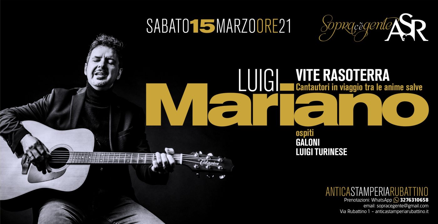 LUIGI MARIANO propone il suo inedito spettacolo “VITE RASOTERRA – cantautori in viaggio tra le anime salve”, in un’atmosfera intima e confidenziale, creata con semplicità da un piano e da una chitarra.