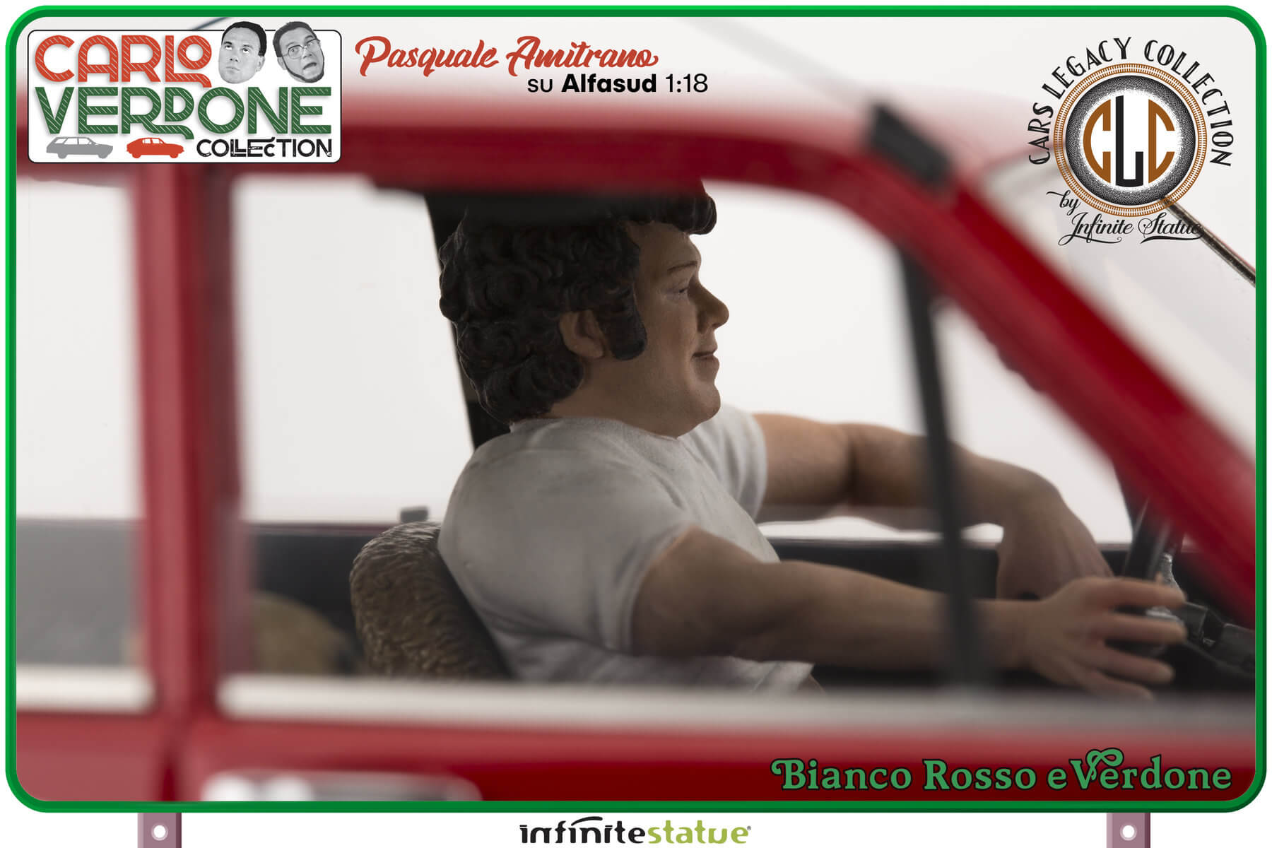 Il modellino dell’Alfasud di Bianco, Rosso e Verdone è perfetto: studiato a fondo dai fotogrammi originali per ottenere un modello “movie accurate”. Anche l’interno dell’auto è riprodotto nei minimi dettagli: rivestimento pelliccia, bambolina allo specchietto, autoradio. È inoltre corredata da una scultura di Pasquale Amitrano.