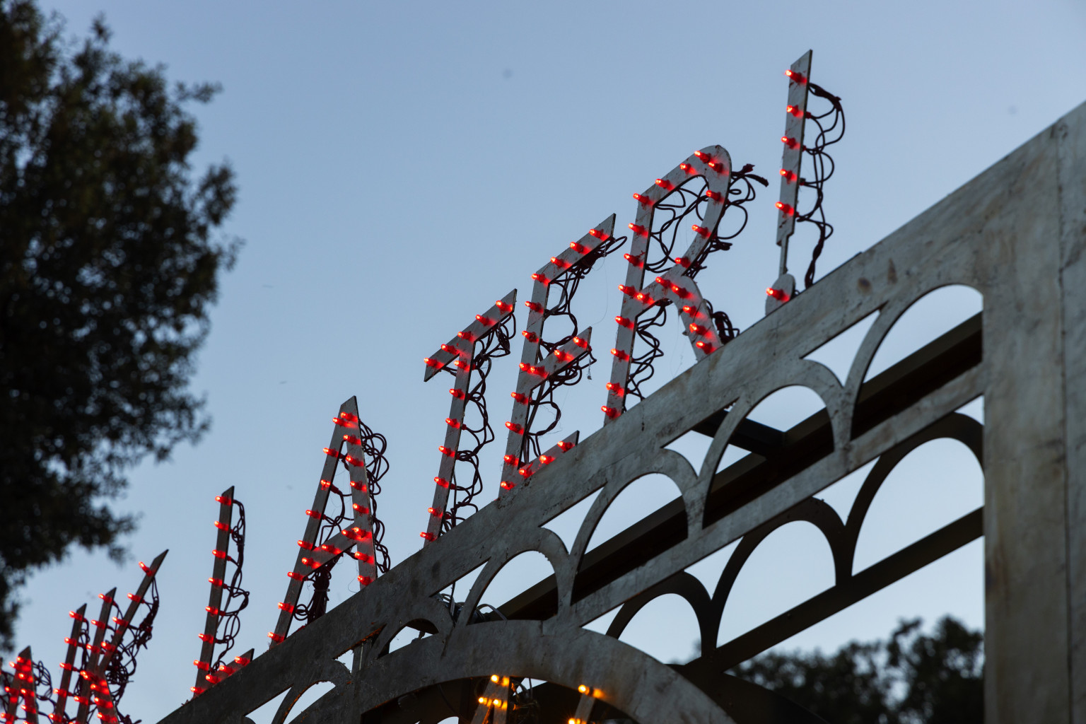 Di fronte a un’opera della Senatore, veniamo sempre chiamati alla partecipazione. Il lavoro spazia dal video all’installazione, fino alla performance, grazie a uno sguardo che mira costantemente a investigare le potenzialità del corpo, il suo rapporto con la mente e l’interazione con lo spazio. L’artista predilige il contesto pubblico, in cui è possibile confrontarsi con le emergenze dell’architettura, dell’ambiente e con la quotidianità dei contesti. Per Villa Borghese ha concepito un invito liberatorio (Dance first, think later/Danza prima, poi pensa, citazione da Samuel Beckett “Dance first think later. It’s the natural order”), che giunge da una scritta accesa su una parete rivestita in foglia d’oro, ispirata ai disegni delle luminarie, rielaborazione dei rosoni e dei portali barocchi. L’installazione si sviluppa grazie a una pedana che potrà accogliere performance e azioni del pubblico e realizzate per il pubblico. Sollecitando il nostro movimento di mente e corpo, la Senatore ci coinvolge in un rinnovato e stimolante rapporto con la natura, oltre gli schemi del quotidiano.