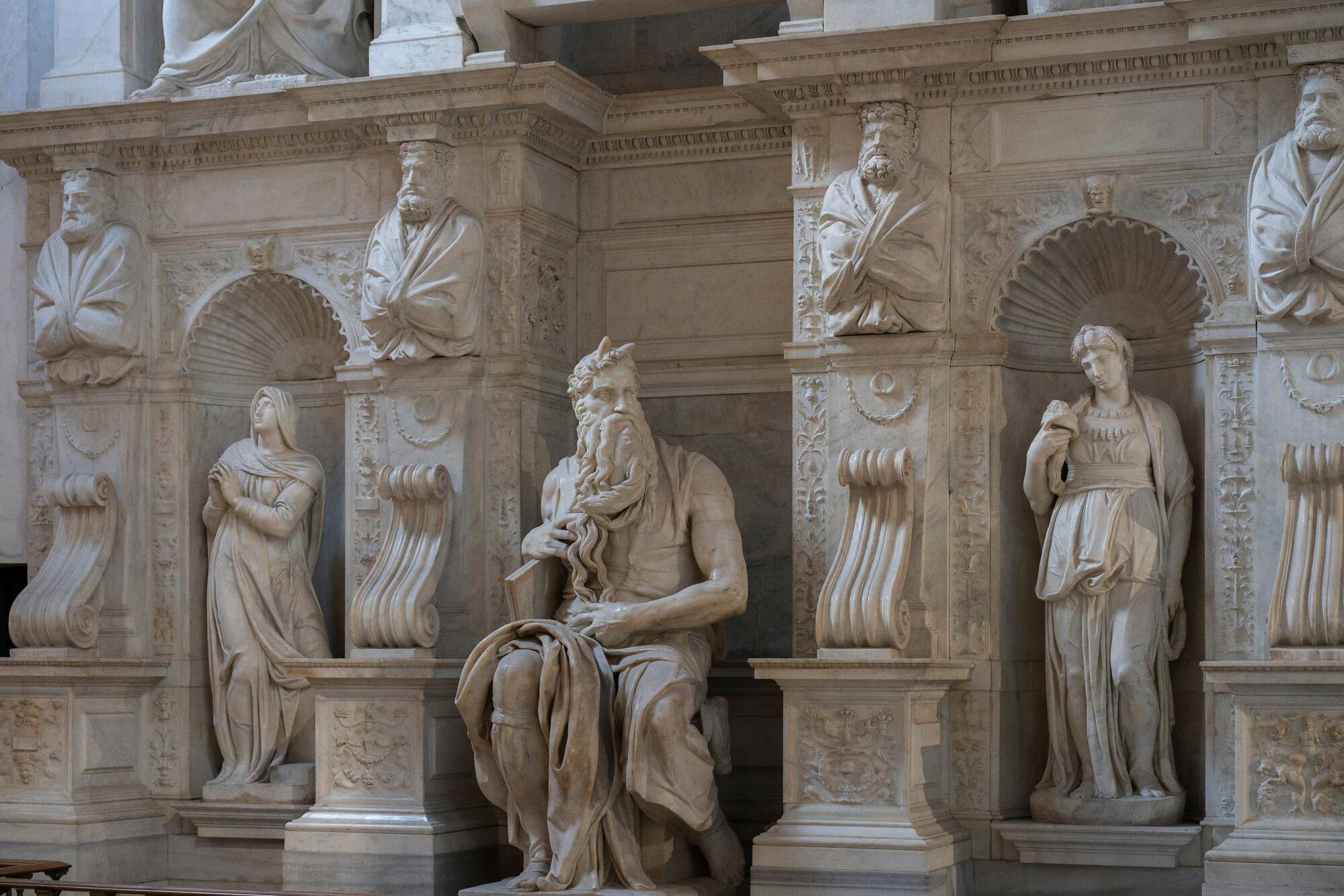 Su al rione Monti si trova una delle opere più potenti di Michelangelo: il Mosè, scolpito per la tomba di papa Giulio II. Seduto con le tavole della Legge, lo sguardo vigile e i muscoli tesi, il profeta sembra pronto a scendere dal monte.