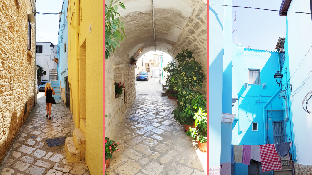 Il borgo antico – quello in cui è ancora possibile ammirare case, porte e finestre tinteggiate di azzurro – risale all’epoca medioevale e si narra che Michele Vazz, che acquistò Casamassima per 76mila ducati nel 1600, riuscì a salvare la città dalla peste facendo un voto alla Madonna e disinfettando i muri della città aggiungendo un po’ di azzurro in omaggio a Maria.