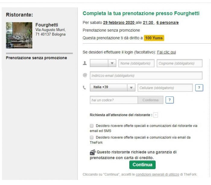 Abbiamo prenotato al Fourghetti di Barbieri