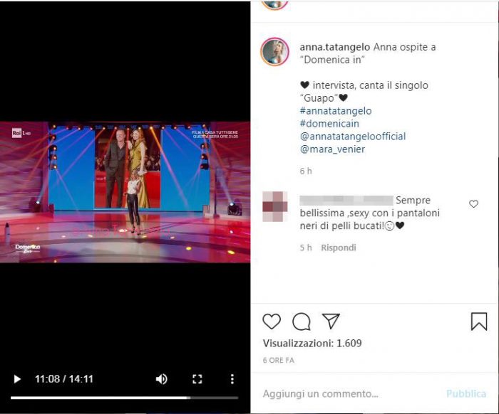 Anna, alla fine dell’intervista, si esibisce in studio e canta Guapo, l’ultimo suo brano in cui canta anche in napoletano. Alle sua spalle, sullo schermo, vengono trasmesse le immagini del videoclip della canzone ma a un certo punto compare una foto del passato.